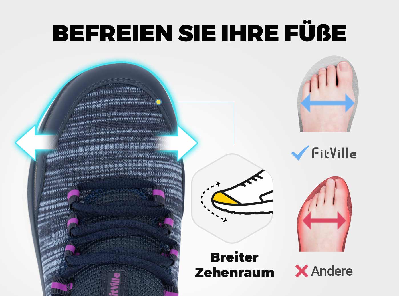 Der geräumige Zehenraum bietet den Zehen ausreichend Platz, um sich frei und natürlich auszubreiten.