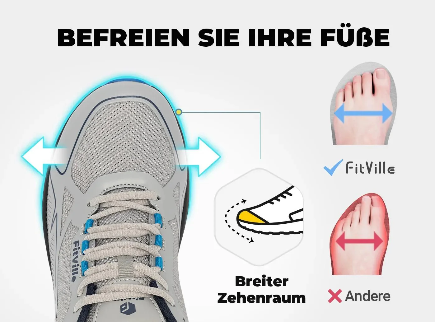 - Bis zu 4E Breite und hoher Spann: Bequeme Passform für breite Füße, Ballenzehen, Arthritis und Hammerzehen.